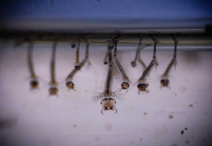 - Larves en forme de virgule à la surface de l’eau stagnante.